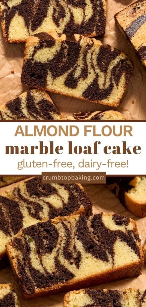 This Almond Flour Chocolate Marble Loaf features beautiful swirls of gluten-free vanilla and chocolate cake with a perfectly moist and tender crumb. It's dairy-free and hits that 'not too sweet' sweet spot without requiring a long list of specialty ingredients. Just a simple base of almond flour and cornstarch paired with kitchen staples like eggs, cocoa and granulated sugar.