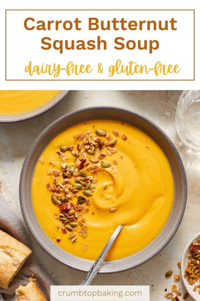 This quick and easy Carrot and Butternut Squash Soup is rich and savory with a hint of sweet and smoky flavor. It's gluten-free, dairy-free and vegan, and comes together in only 45 minutes in just one pot! While I love a sheet pan roasted veggie soup (like this roasted sweet potato and carrot soup), sometimes I want my comforting soup to come together in less time and with fewer dishes. So, instead of roasting the carrots and squash, they cook together with the other seasonings and broth on the stove top in half the time as roasting.