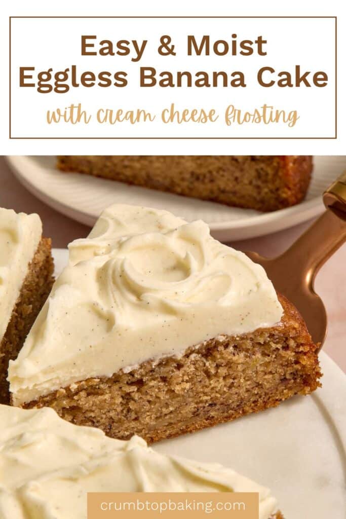 Like my banana cake with oil recipe, making a banana cake without eggs is quite easy. You just need the right combination of leavening ingredients and the right amount of moisture so the cake turns out perfectly soft and tender.
