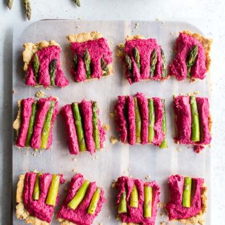 Beet Hummus Asparagus Tart with Almond Crust